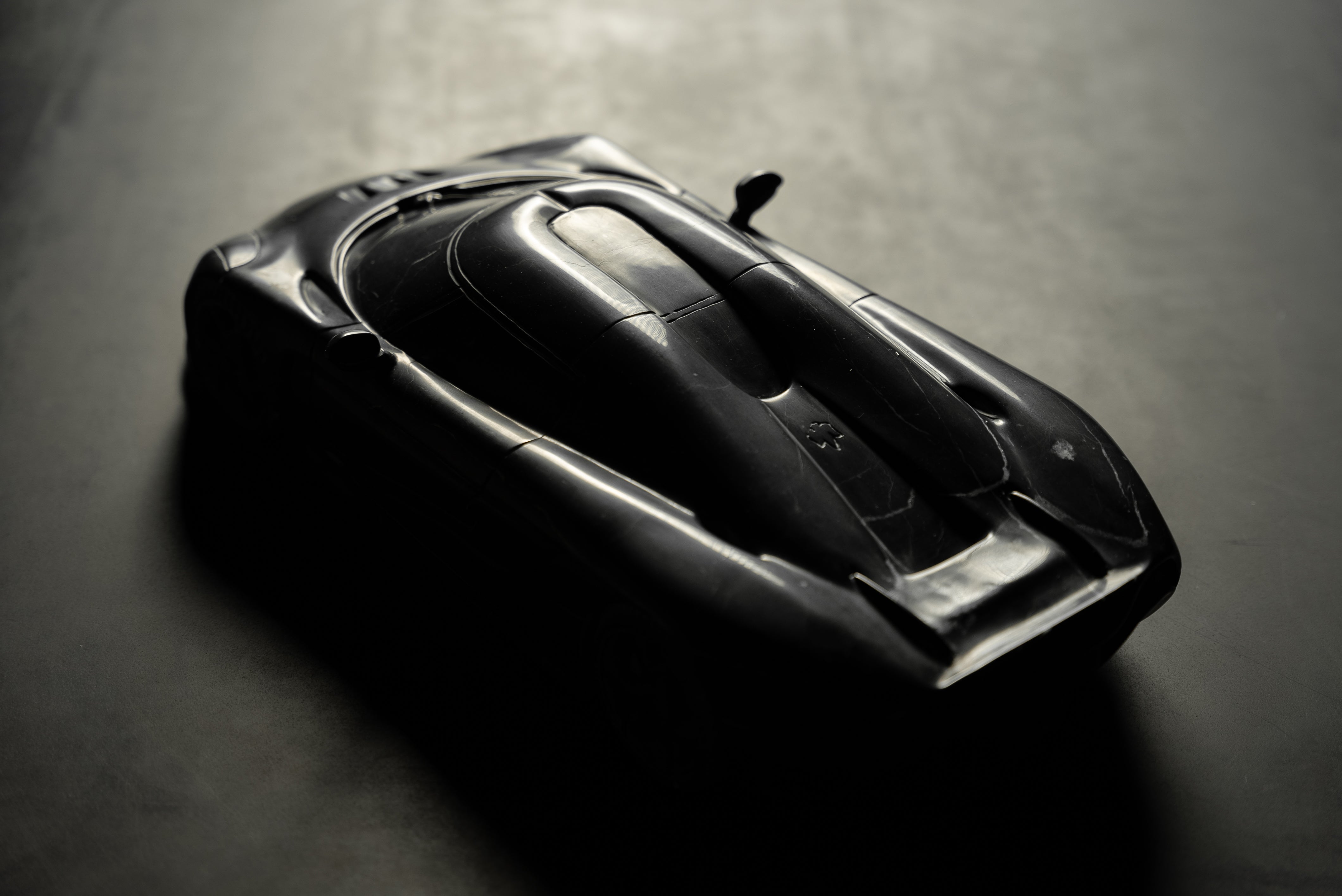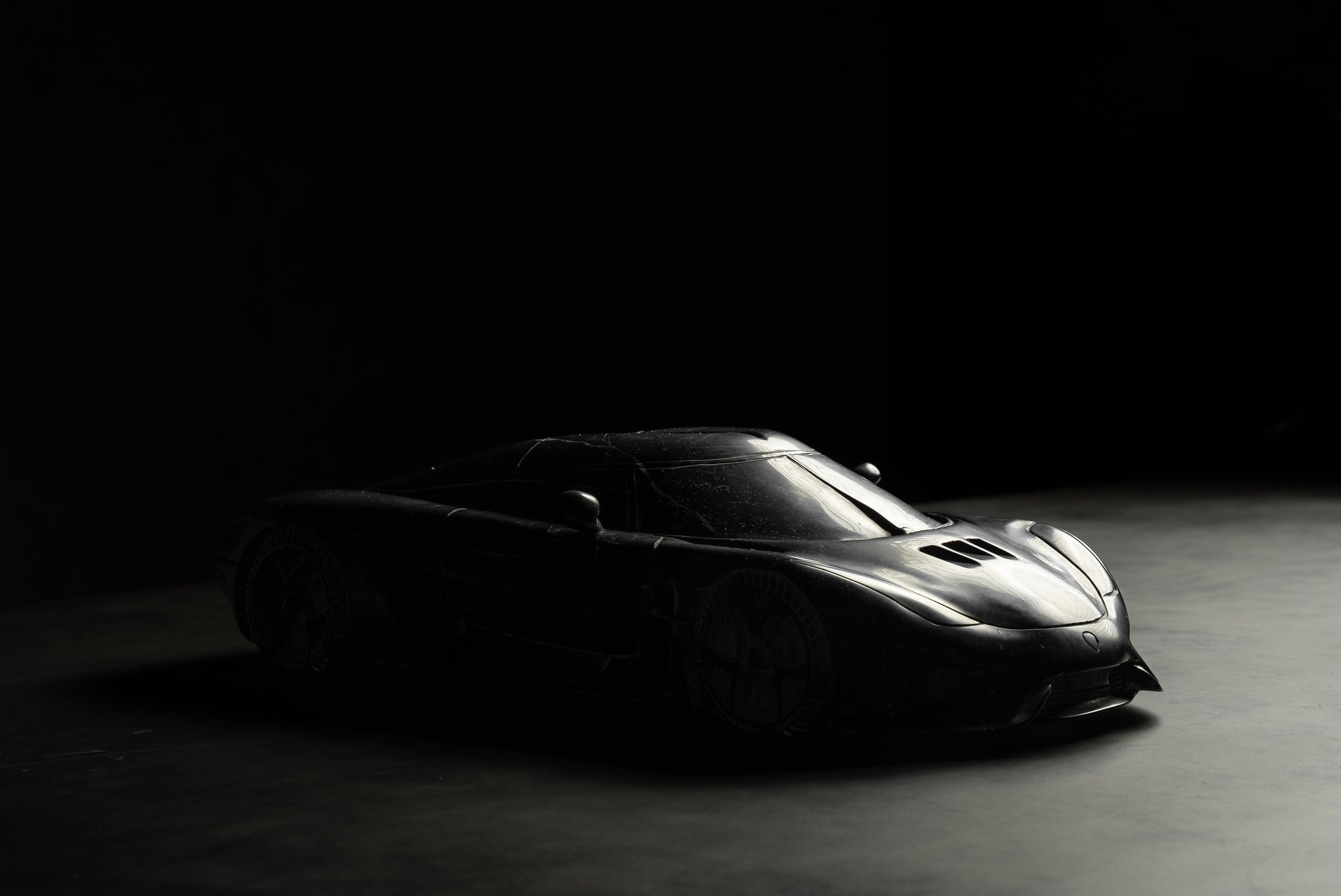 This particular model, meticulously carved from Nero Marquina Marble, captures the Regera’s distinctive design — from its aggressive stance and flowing curves to its innovative features and streamlined silhouette. The deep black tones and natural white veining of the marble highlight its dynamic form, creating a unique piece that embodies both cutting-edge automotive excellence and timeless elegance.